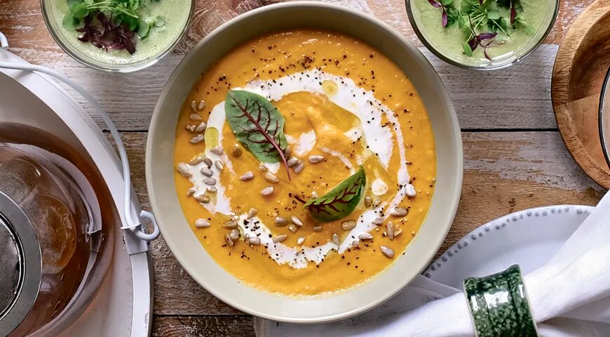 Ваша кулинарная фантазия не должна ограничиваться только готовкой. Красивая подача — это половина успеха! Суп из батата можно украсить семечками и сливками, что не только улучшает вкус, но и способствует усвоению витамина A. Этот простой прием придаст элегантности вашему блюду и обязательно порадует гостей.