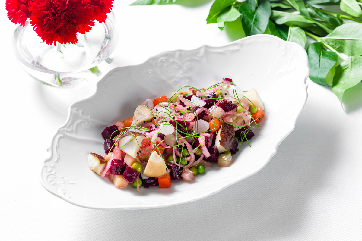 Тенденции кулинаров открывают новые горизонты для использования белых грибов, и вместе с тем в меню остаются классические блюда, вызывающие ностальгию по домашней кухне. Например, винегрет с солеными боровиками можно попробовать в гранд-кафе «Dr. Живаго». Здесь белые грибы также используются в супах с перловкой и соусах к мясным блюдам. Процесс приготовления этого яркого и сытного салата, как и других специалитетов, основан на высокой кулинарной культуре, поэтому команда кафе с радостью поделилась оригинальным рецептом.