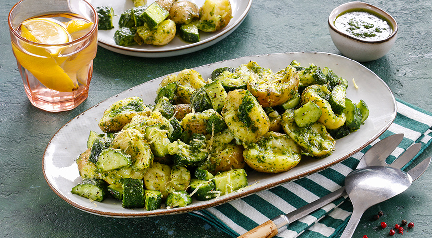 Этот простой, но необычайно вкусный картофельный салат станет прекрасным дополнением к любому столу. В его составе – сочные лимонные огурчики и ароматный песто, который можно приготовить из любого вида зелени. Такой вариант идеально подходит для летних пикников или легкого ужина, пишет источник.