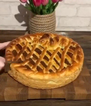 После того как тесто поднялось, формируют пирог, дают ему немного подойти, смазывают взбитым яйцом и помещают в разогретую до 170-180 градусов духовку на примерно 40 минут.