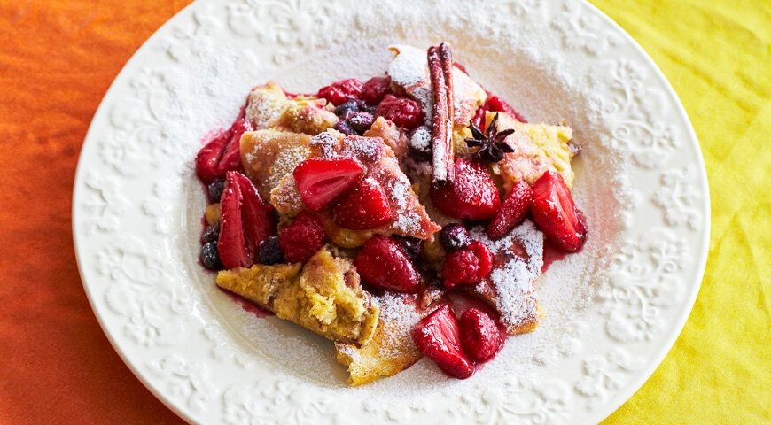 - Суфле-омлет на сковороде с ягодным соусом — нежное блюдо, которое поразит даже самых привередливых. Рецепт здесь.