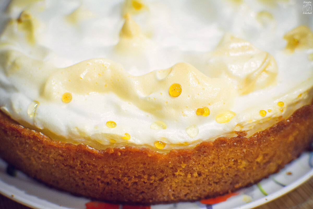 3. Завершение с меренгой: Взбейте белки с сахаром до устойчивых пиков. Выложите меренгу на горячий выпеченный пирог и уменьшите температуру до 160°C. Выпекайте ещё 15 минут. После готовности покройте торт посудой для образования конденсата, создающего ту самую магию капелек.