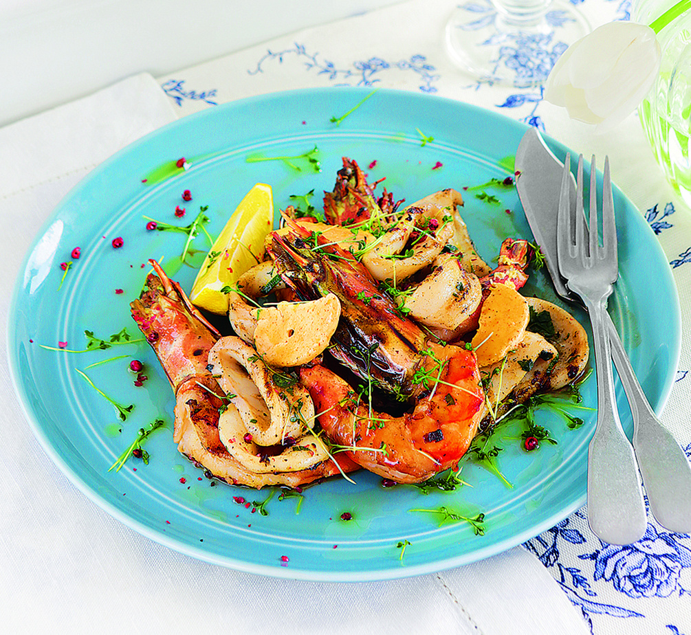 - Ингредиенты: кальмары, морепродукты, свежие овощи, ароматные приправы.