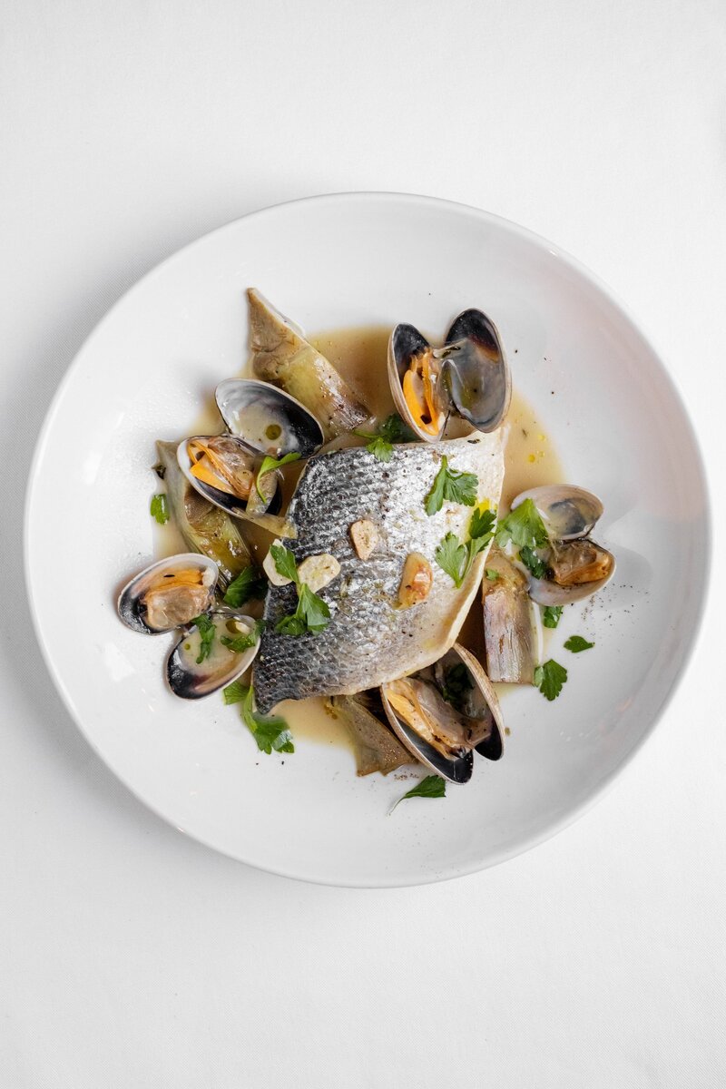 На побережье итальянской Кампании есть уникальное блюдо, в которое гармонично вплетены свежесть моря и богатство суши. Здесь маленькие ракушки вонголе не только играют главную роль в пасте, но и становятся основой для супов и закусок, а также идеально сочетаются с рыбой. Это блюдо предлагает настоящее кулинарное путешествие, где вонголе сначала протушиваются с вином, а затем в их компании готовится филе сибаса и маринованные мини-артишоки. Вы получаете яркое сочетание морских вкусов с легким винным благородством, которое подарит вам настоящий вкус Италии. Рецепт разработан шеф-поваром Лучано Казале из ресторана Salumeria.