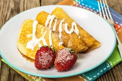 Эти тонкие и эластичные блинчики прекрасно подойдут как для завтрака, так и для закуски в любое время дня.