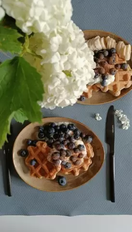 Чтобы приготовить, размягченное или растопленное масло нужно смешать с молоком и яйцом. Затем добавить муку, разрыхлитель, лимонный сок, стевию и соль. Все тщательно перемешать и готовить в вафельнице. Время выпекания составляет около 7 минут при мощности 700 Вт.
