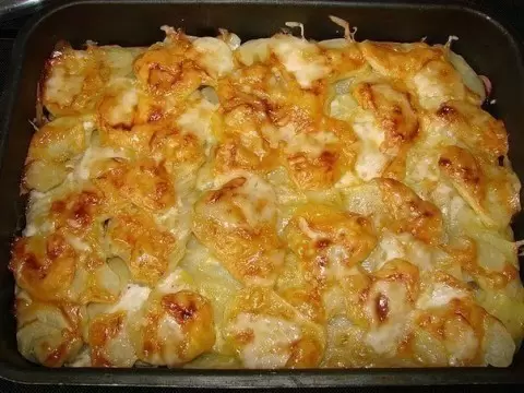 Лук очищается и нарезается кольцами или полукольцами — кому как нравится. Сыр, который будет использоваться для запеканки, натирается на крупной терке. На заранее смазанный маслом противень выкладывается мясо, сверху ложится слой лука, а затем все щедро покрывается майонезом и посыпается тертым сыром.