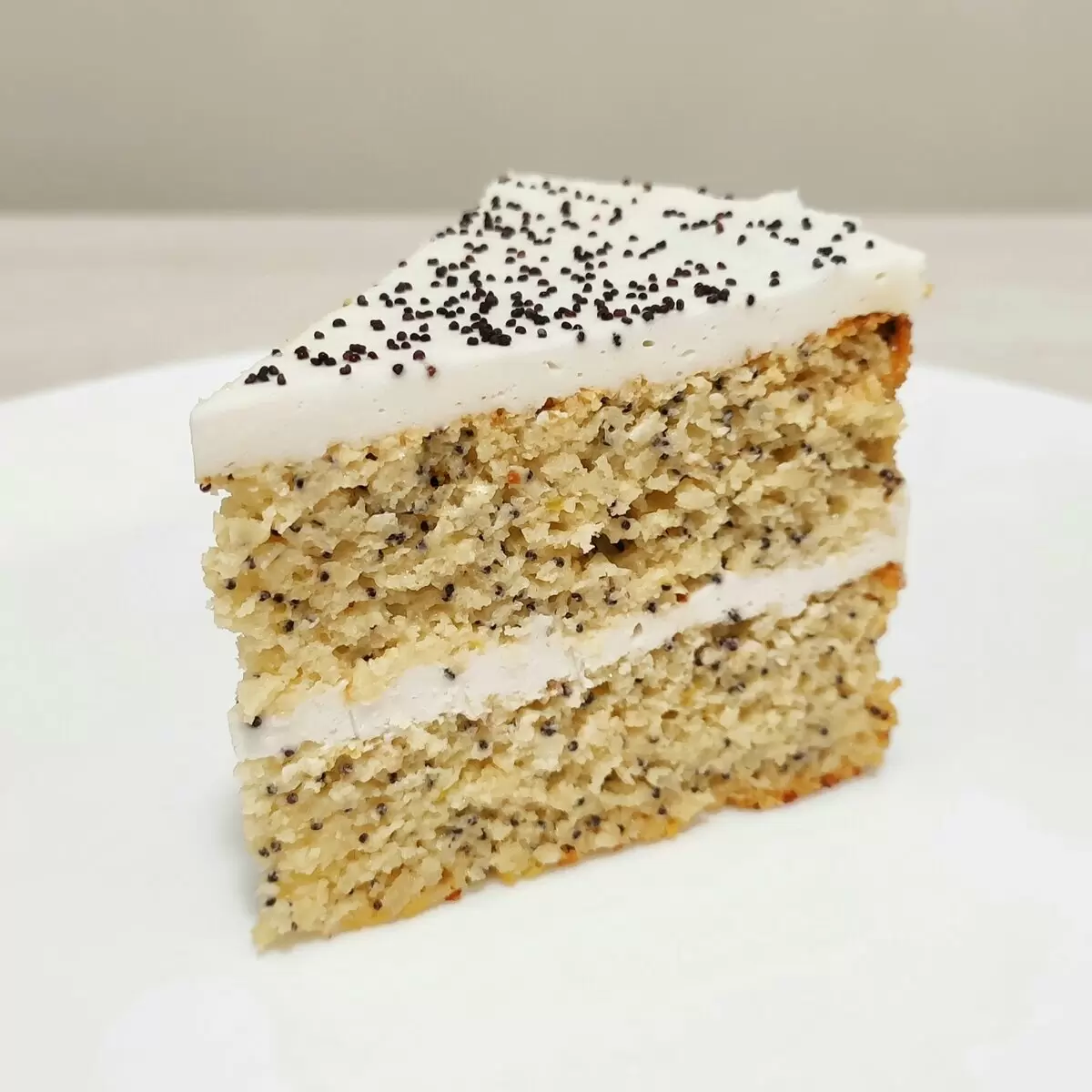 Сборка торта проходит в кольце с ацетатной лентой: выложить слой бисквита, затем крем, повторить два раза. Перед подачей украсить маком и охладить в холодильнике минимум 4 часа. Это лакомство обязательно привлечет внимание как приверженцев кето-диеты, так и любителей сладкого!