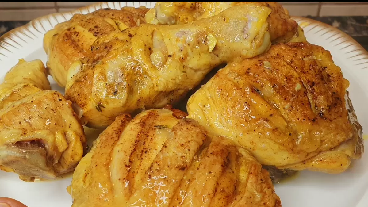 1. Подготовка курицы и грибов: Начинается всё с куриных голеней и бедер. Их следует тщательно промыть, обсушить и сделать неглубокие надрезы. Посолить, поперчить и добавить куркуму, перемешав с оливковым маслом. Оставьте мариноваться на 30-40 минут.
