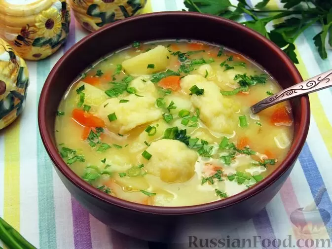 Лёгкий грибной суп из шампиньонов легко сделать более питательным, добавив клёцки с укропом, которые придадут блюду особый аромат. Грибной суп можно украсить обжаренными пластинками шампиньонов и свежей зеленью. Для этого рецепта понадобятся: