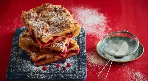 - Замороженное слоеное дрожжевое тесто – 500 г