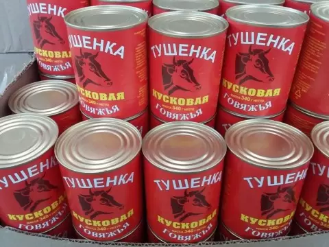 - Тушенка и мясные изделия. Хотя цена на тушёнку может начинаться от 18 рублей, качество оставляет желать лучшего. Эти продукты не всегда подходят даже для домашних животных.