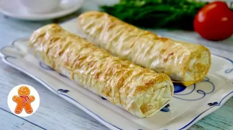Теперь дело за малым. Лаваш следует разрезать на части и по центру каждой части помещать начинку. Аккуратно заворачивая, формируются трубочки. Для красивого золотистого цвета стоит обмазать их взбитым яйцом. Затем трубочки помещают в разогретую духовку и запекают до румяной корочки.