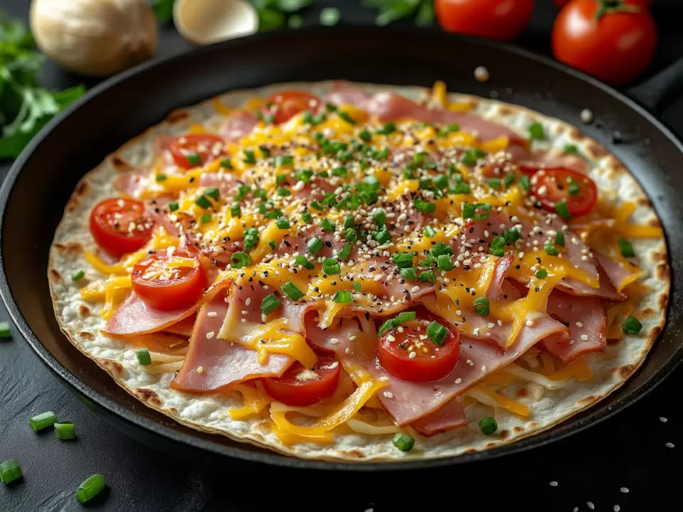 Готовое блюдо подается горячим, и представляет собой полноценный завтрак, не требующий дополнительных гарниров. Варианты начинки можно адаптировать по вкусу — вместо ветчины можно использовать отварную курицу, грибную начинку или сладкий перец. Специи также варьируются в зависимости от предпочтений.