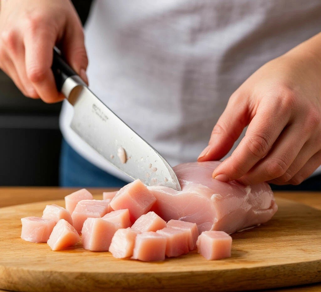 1. Подготовка курицы: Помыть и обсушить филе, нарезать его кусочками. Приправить солью, перцем и паприкой. Разогреть сковороду с маслом и обжарить курицу до золотистой корочки (примерно 5-7 минут). Переложить на тарелку.