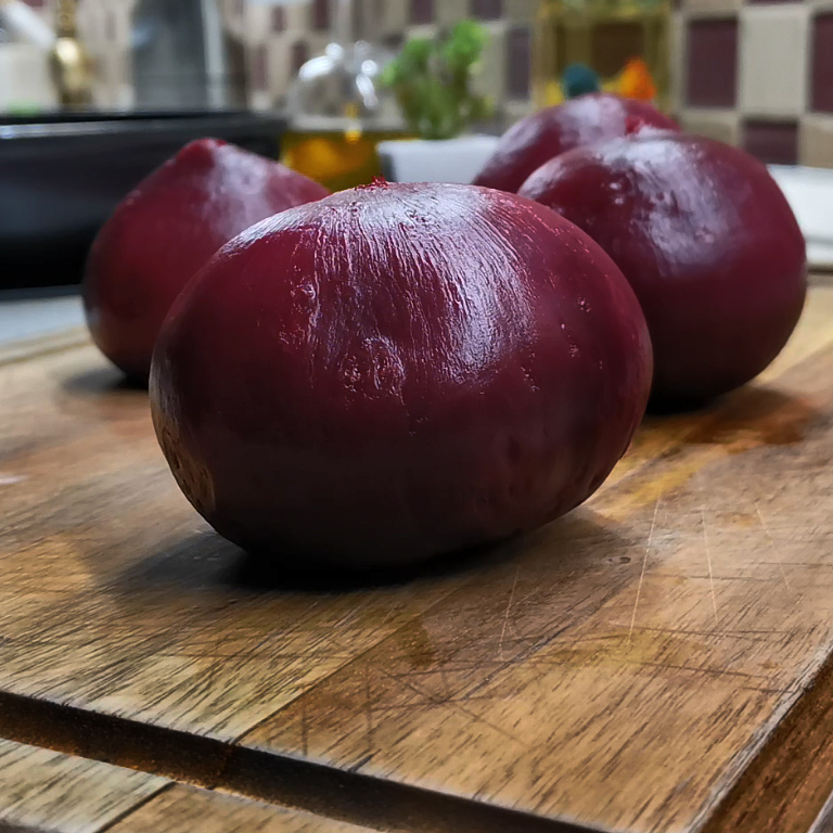Для начала необходимо отварить свеклу до готовности. В это время можно заняться нарезкой лука: чем тоньше он будет нарезан, тем лучше. Полукольца лука отправляются на сковороду с разогретым растительным маслом, где подрумяниваются до легкой золотистости.