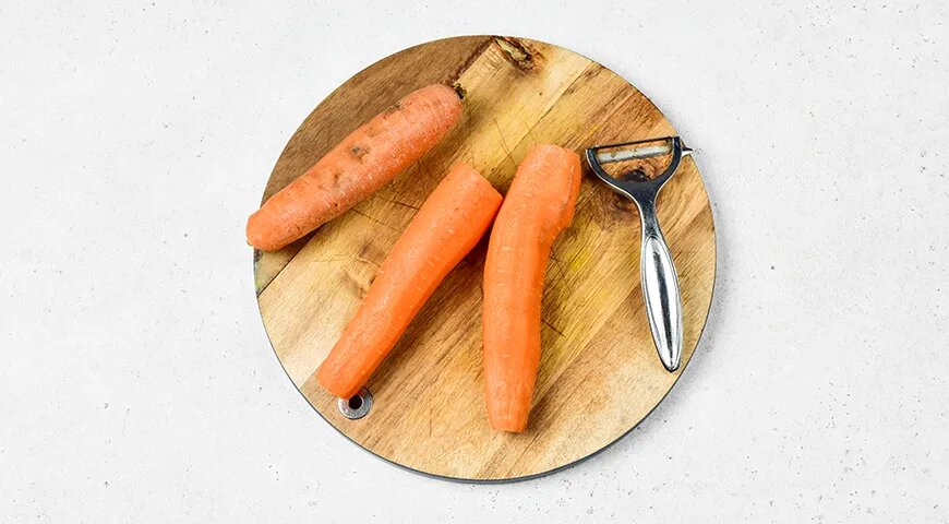 Свежая и качественная морковь — основа блюда. Перед началом кулинарных подвигов необходимо тщательно промыть корнеплод. Рекомендуется использовать щетку, чтобы удалить все загрязнения. После этого морковь очищается от кожуры.