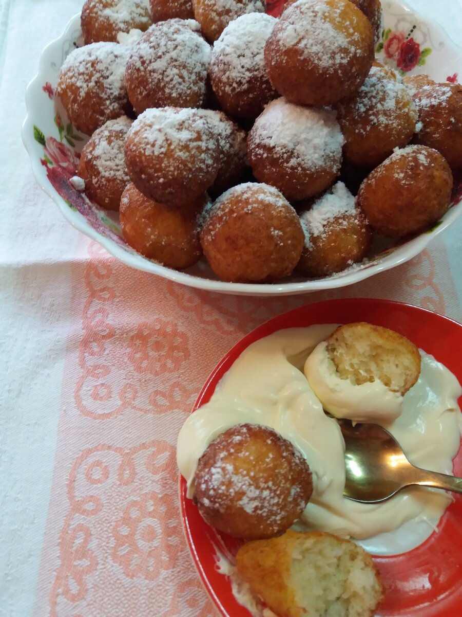 Готовые творожные колобки посыпают сахарной пудрой и подают со сметаной — это прекрасно дополнит их вкус и сделает десерт еще более аппетитным.