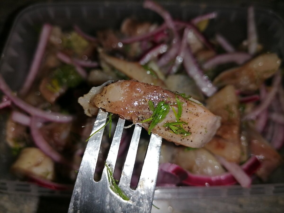 Завершающий шаг — залить все это растительным маслом и убрать в холодильник на сутки. Селедка готова к употреблению!