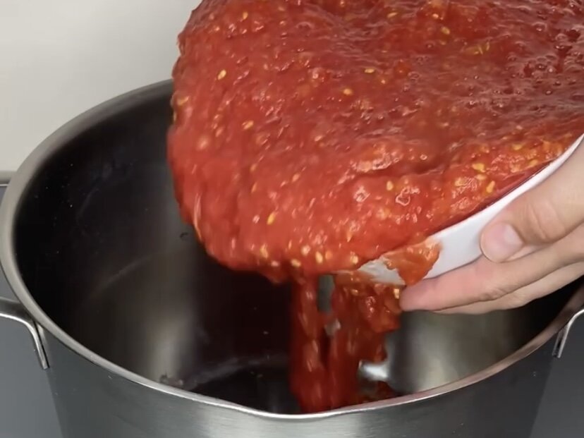 Из 3 кг помидоров получится не только 5 банок соуса, но также небольшая порция «на покушать». После разлива переворачиваем банку вверх дном, чтобы убедиться в герметичности. Для дополнительной стерилизации оборачиваем ее одеялом и оставляем остывать.