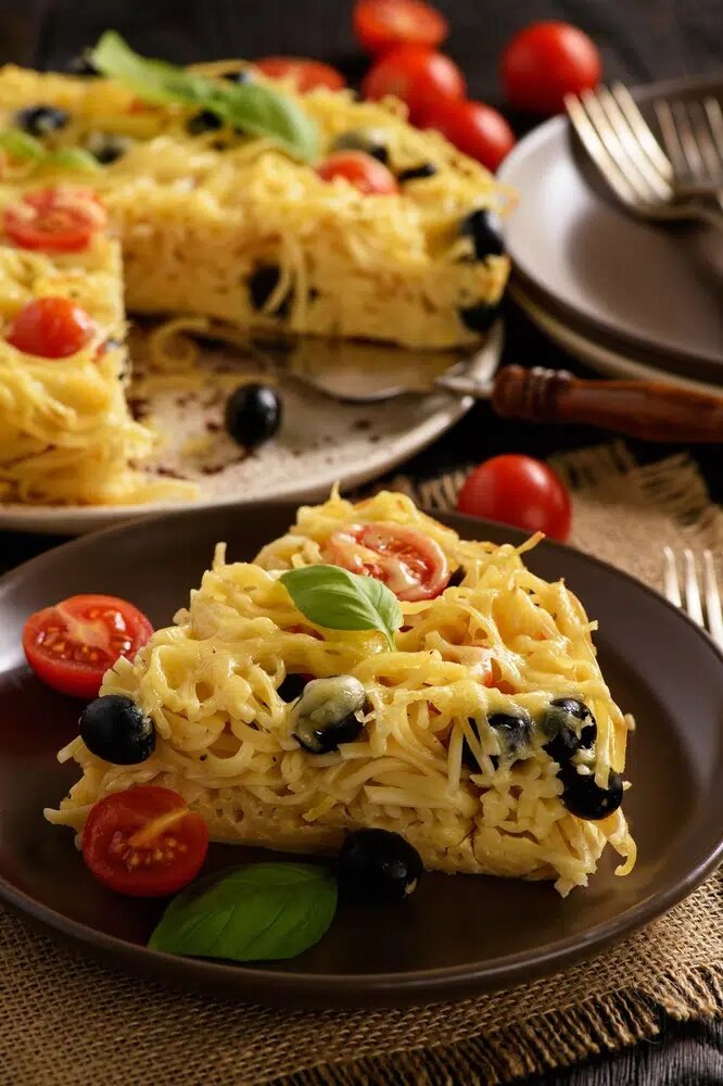 Нежная запеканка с макаронами и яркими помидорами