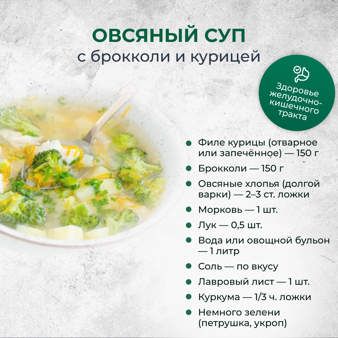 У этого супа есть все шансы стать вашим фаворитом: он не только согревает, но и восстанавливает силы, обогащая организм клетчаткой из брокколи и овсянки, а также легким белком от курицы. Куркума, известная своими противовоспалительными свойствами, дополнительно поддерживает здоровье печени. Попробуйте этот уникальный рецепт и позаботьтесь о своём благополучии!