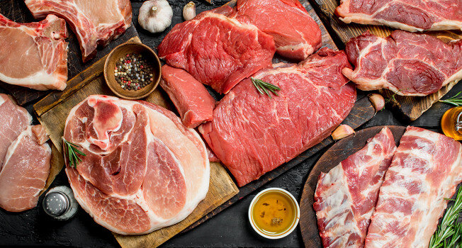 Качество куска мяса можно определить по его внешнему виду. Цвет должен быть равномерным — от светлого до насыщенного в зависимости от типа мяса. Свежая свинина розовая, говядина может варьироваться от ярко-красного до темно-вишневого, а баранина — почти бордовая. Если вам попался кусок с бурым налетом, лучше от него отказаться.