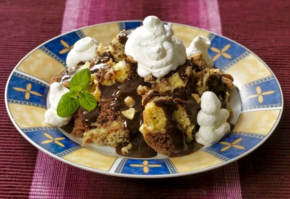 В каждом уважающем себя кафе Будапешта можно встретить этот великолепный десерт. Он выглядит как настоящая гора сладостей: слои бисквитов, пропитанные ароматным ромом и ванилью, чередуются с малиновым или абрикосовым джемом и легким заварным кремом. Все это великолепие щедро поливают шоколадным соусом, украшают взбитыми сливками и свежими ягодами.