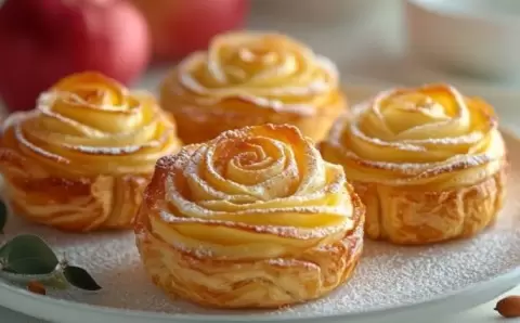 Яблочные розочки из слоеного теста — это не просто десерт, а настоящее произведение кулинарного искусства, которое легко готовится. Хрустящие пласты теста в сочетании с нежными карамелизированными яблоками и щепоткой корицы создают изысканное угощение, подходящее для любого случая, будь то романтический ужин, уютный завтрак или детский праздник.