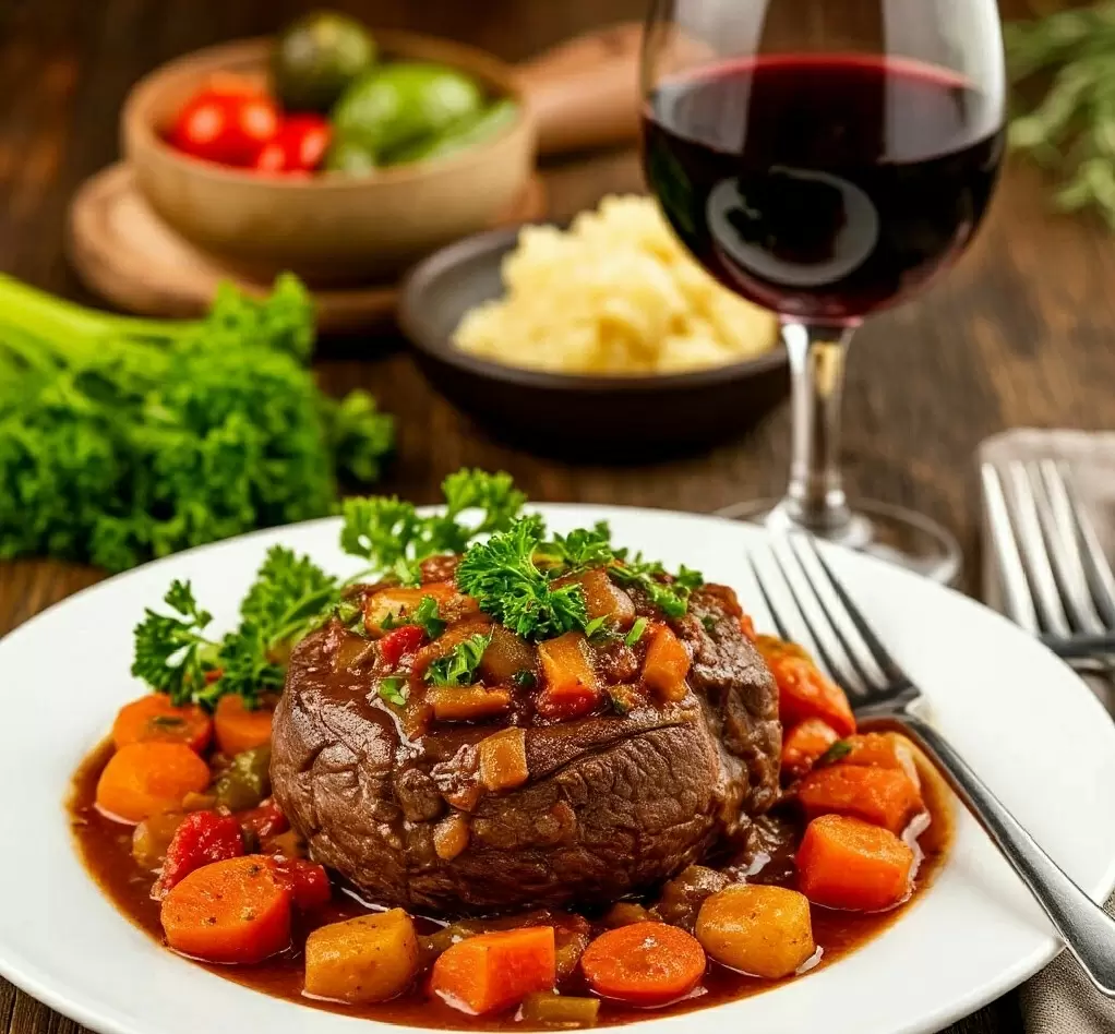 В этом блюде нежность достигается благодаря длительному приготовлению. Соединительные ткани и коллаген распадаются, превращая мясо в сочное искушение, которое порадует всех.
