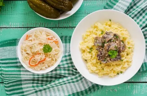 - Гречневая каша, варившаяся на воде, часто становилась гарниром, хотя раньше она была основным блюдом на ужин.