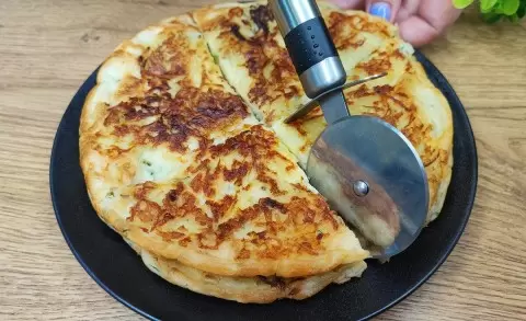 На сковороде разогревается растительное масло, после чего тонким слоем выкладывается картофельная масса и обжаривается на огне 2–3 минуты. Затем верхний слой покрывается тестом и жарится еще 5 минут под крышкой до золотистой корочки. Обратите внимание: затем лепешку переворачивают и готовят 5 минут с другой стороны. Из указанного объема ингредиентов получится две порции.